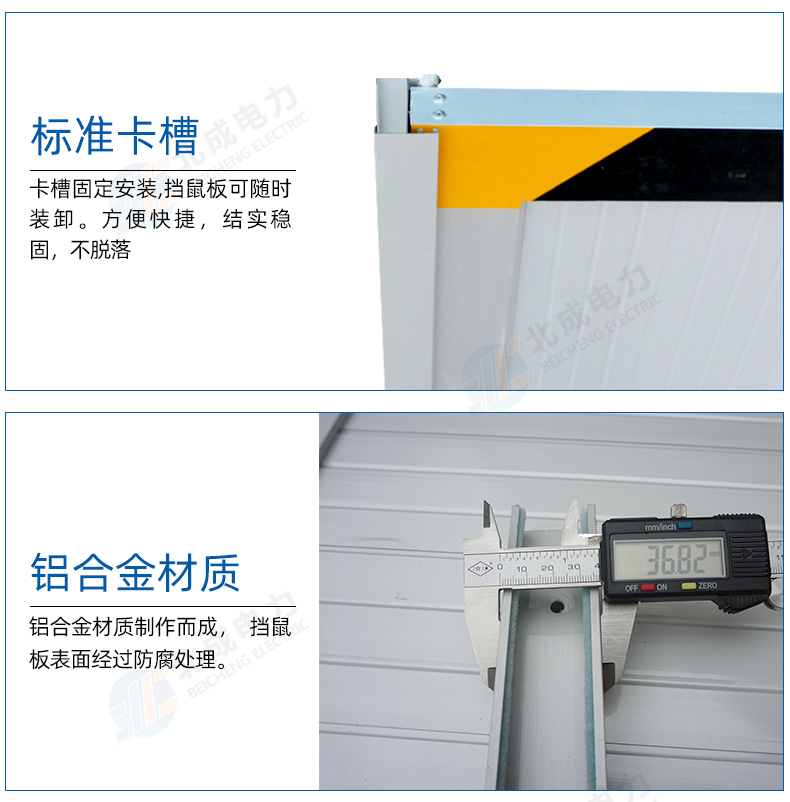 1.擋鼠板是由特質(zhì)鋁合金材質(zhì)制作而成,擋鼠板表面經(jīng)過防腐處理。